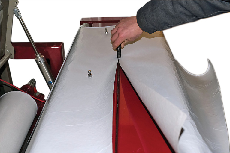Although these felts are simple peel-and-place products that are very effective, some roll formers have reported problems with applying the felt to metal. In some cases, backing on the felt comes off inside the machine rather than, as intended, before it goes into the machine, gumming up rollers and dies. A steel fabrication shop in Michigan made it their goal to find a solution.