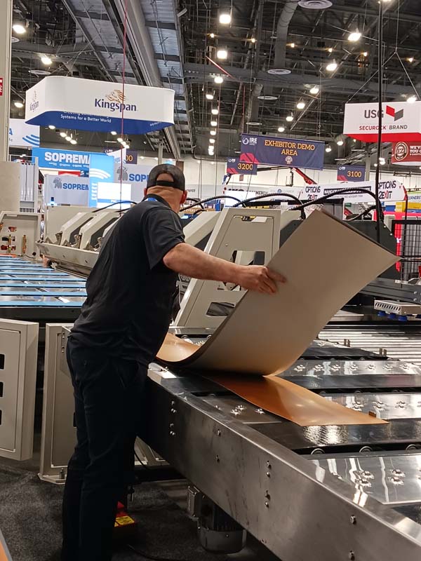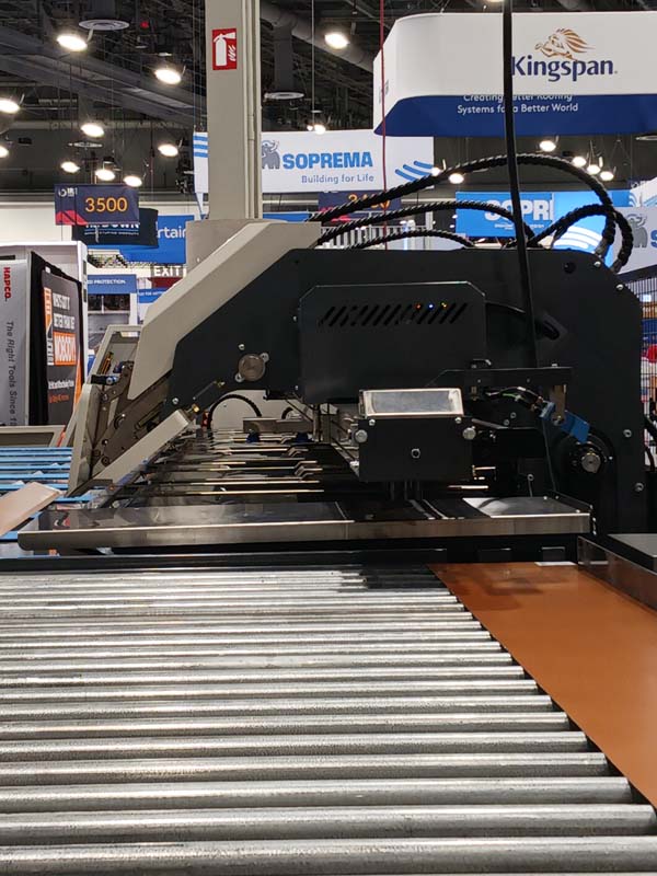 Eddy Pentz (right) demonstrates the Slinet slitter in the ASCO USA, Inc. exhibit. The Slinet S1.5 features integrated coil storage. Note the slit pieces on the table in front of Eddy … The machine features up to 8 automatically adjustable knives, variable cutting gaps, and bottom-up cross-cutting to prevent scratches. The EvoBend trim folder was on display in the Tennsmith / Roll Former / Roper Whitney exhibit. Judging by the pile of trim samples, its capabilities were demonstrated often.The Roll Former Perforator was also on display in the Tennsmith / Roll Former / Roper Whitney booth. A Schechtl folder is demonstrated in the MetalForming exhibit.The Metal Roofing Alliance distributed the “Residential Metal Roofing Buyer’s Guide” and “Max Builds a Metal Roof.” The Max Builds children’s books have been well received by industry professionals.SWI Machinery demonstrated its impressive 28-foot automated folder.A prototype color scheme of the Variobend long folder from Forge (formerly Hershey’s Metal Meister). A prototype color scheme of the Variobend long folder from Forge (formerly Hershey’s Metal Meister). A Variobend in the familiar blue finish.