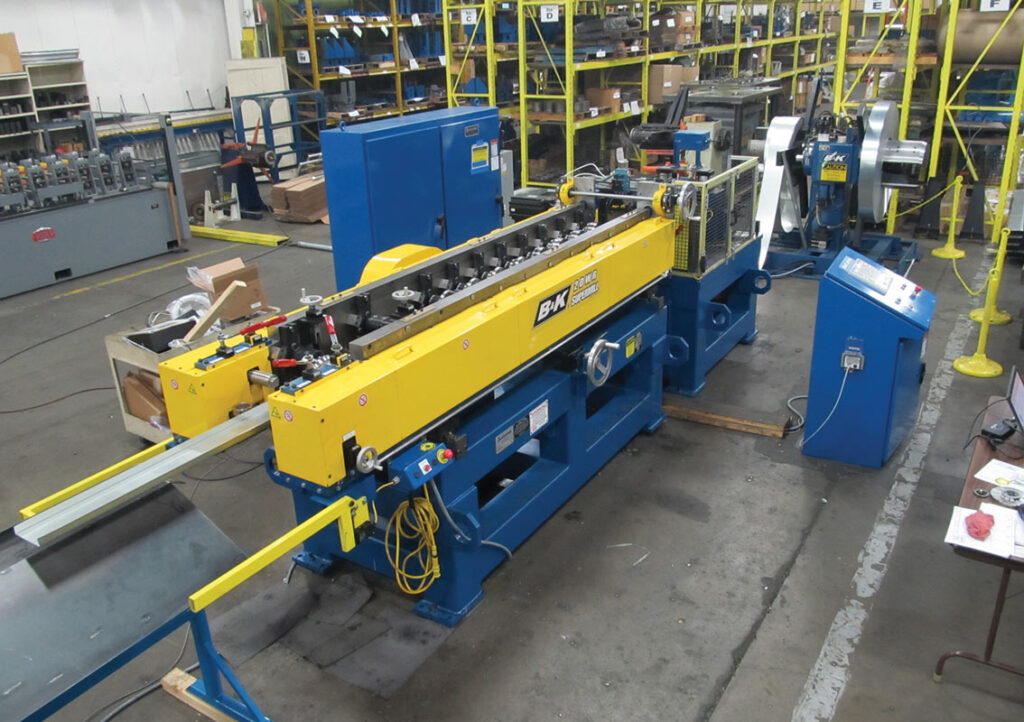 Booth 310: The B&K Supermill Roll Forming System is the go to choice in the construction industry for manufacturing drywall studs, track, and structural joists for steel framing applications. Built for versatility and scale, it accommodates 1⅝” to 8” web widths with gauge adjustments ranging from lightweight 25 g drywall up to 18 g light structural steel, all within a compact footprint (less than 30 ft long and just over 10 ft wide), and capable of producing 3–7 tons per hour at speeds reaching 500 ft/min. Designed to streamline operations for distributors of all sizes, it offers fast changeovers and optional hemming fixtures and pairs perfectly with the B&K Accessory Roll Forming System, which extends production capabilities to resilient and furring channels (RC1, RC2, CRC, Z furring), corner beads, hat sections, drywall angles, J channels, and more, making it an integrated, end to end solution for modern steel framing needs.
