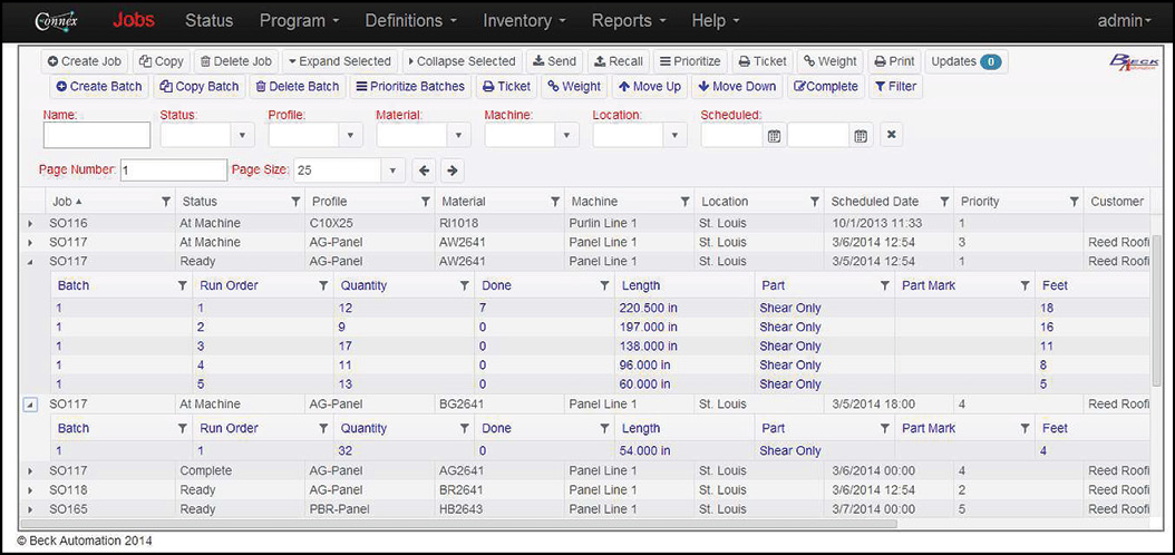 “Companies realize the time savings,” Beck says of the totally integrated system. “They see that, now I’m entering the order information one time and I’m not having to re-enter that; it saves scrap, saves errors. If a customer calls in and says, I need 10, 12-foot pieces, and someone inputs it instead as 12, 10-foot pieces, that could end up as a lot of scrap. The more times I have to manually input information, the more times I have a chance of entering the wrong information.”